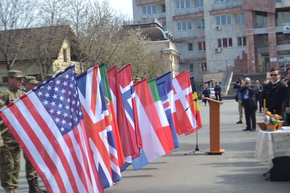 De departe, un moment special l-a constituit prezentarea drapelelor statelor care fac parte din NATO. Acestea au fost prezentate participanților de către militari.