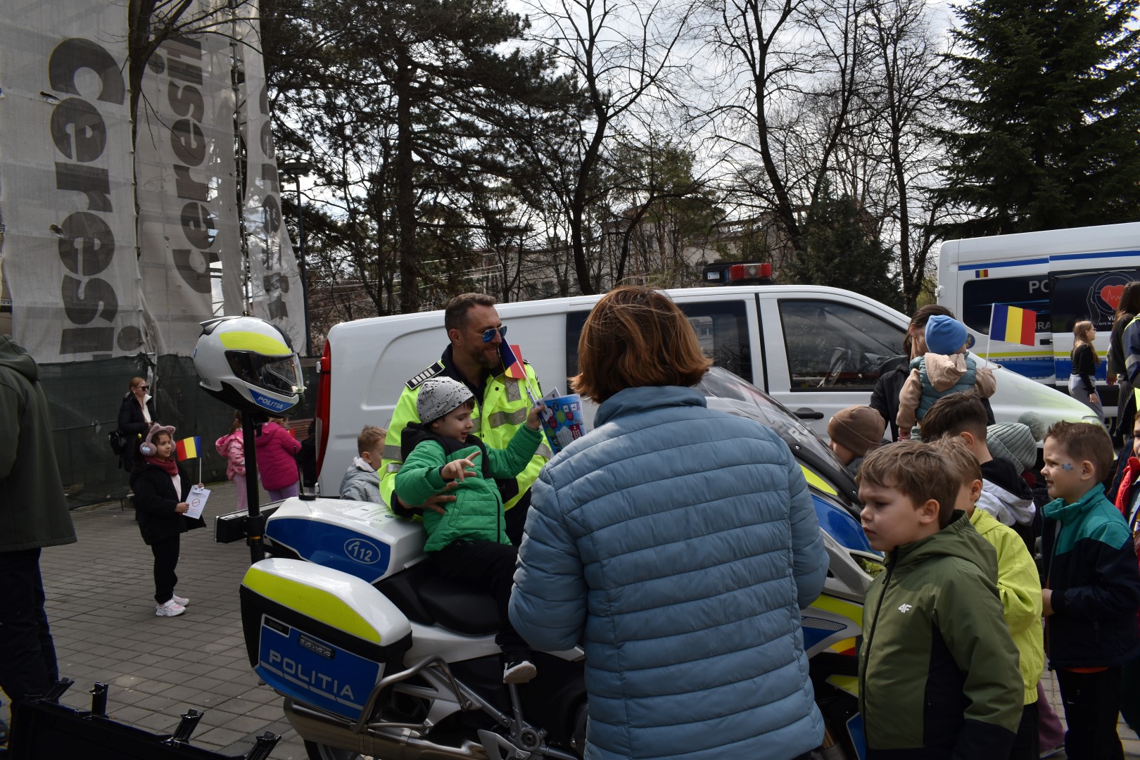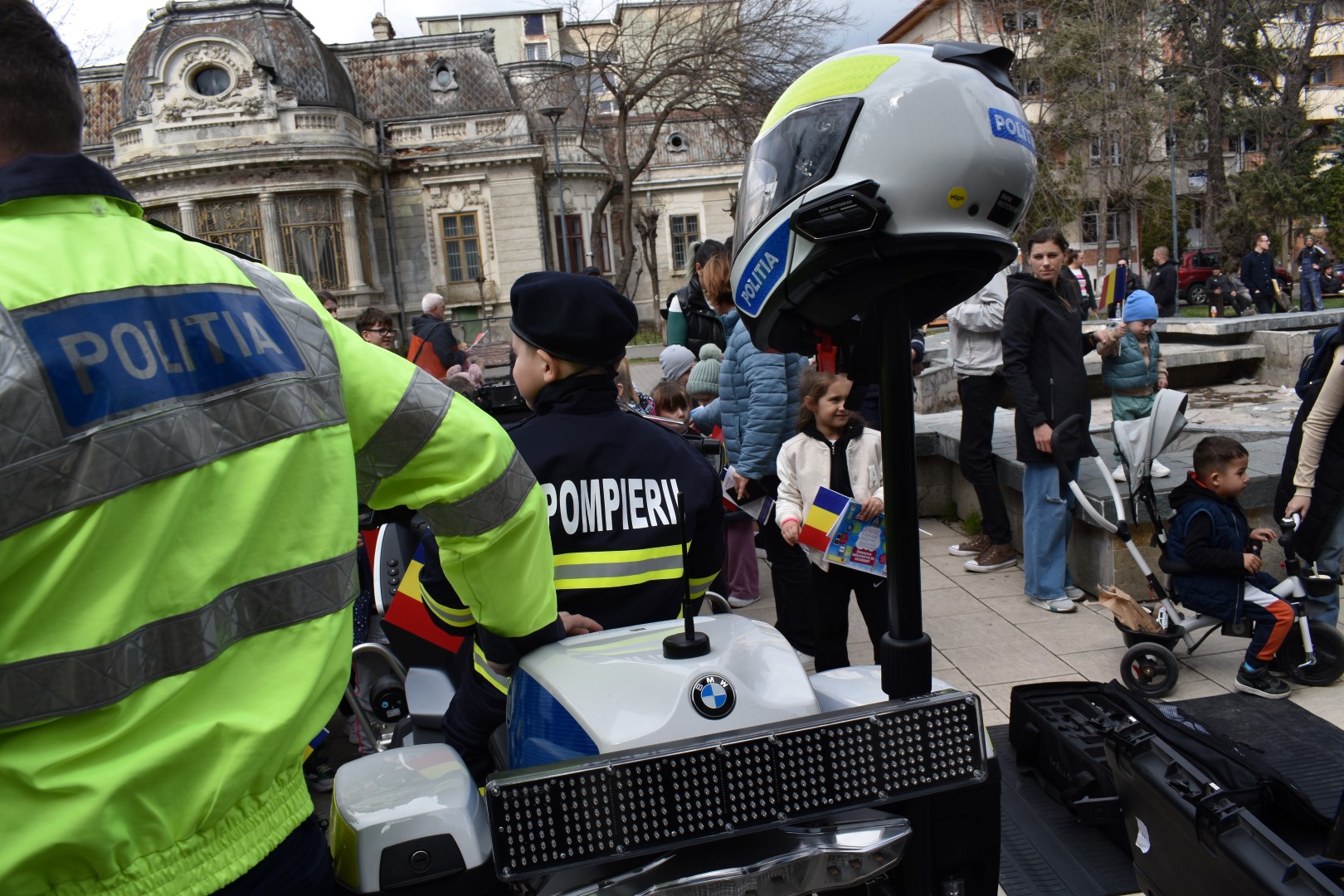 De altfel, motocicleta a fost una dintre „atracțiile” de pe Pietonalul Unirii, întrucât numeroși copii au dorit să facă poze. Și mascații i-au „cucerit” pe copiii veniți de la diferite unități de învățământ.