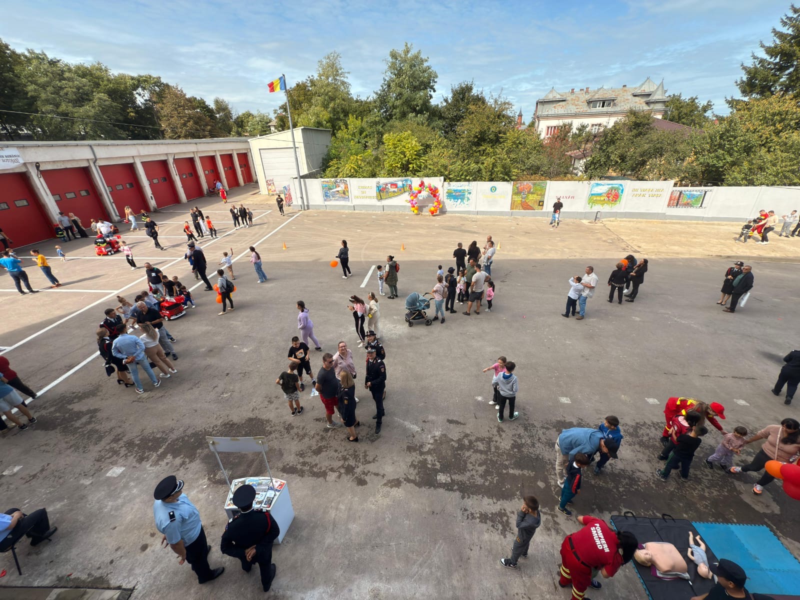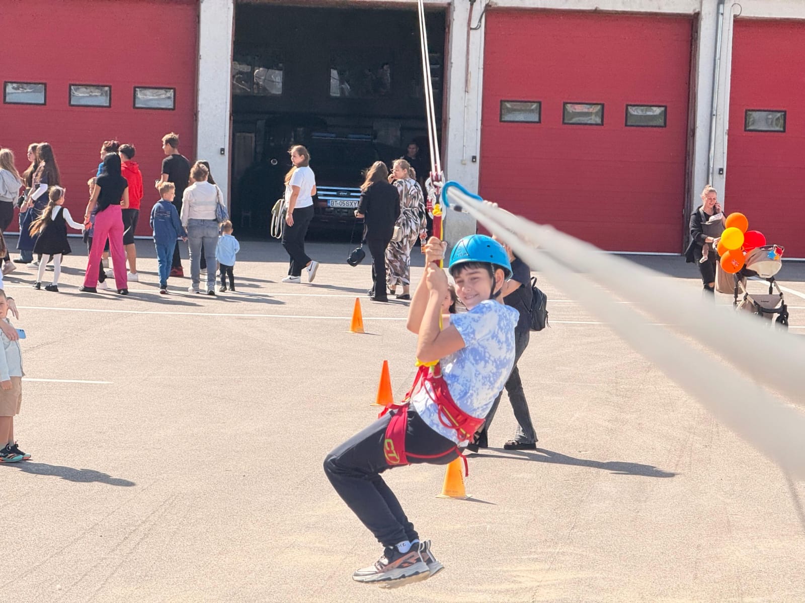 Cei mici au fost vedetele zilei. Au urcat în autospecialele de intervenție, au probat casca și haina de protecție și au descoperit cum funcționează furtunul cu apă. Tiroliana și mașinuțele electrice de pompieri au fost atracțiile principale, dar nu au lipsit nici activitățile creative și educative: