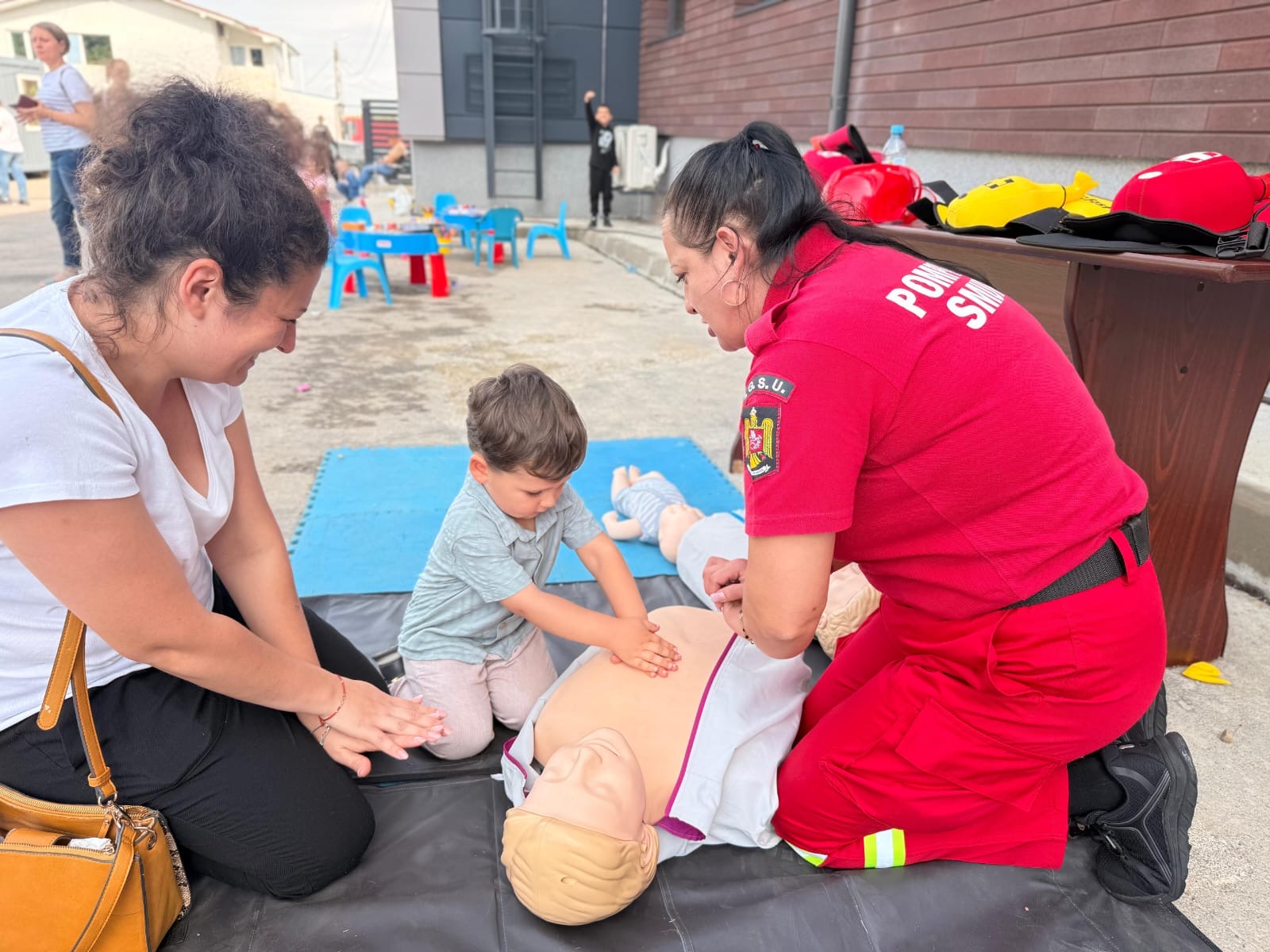 Un moment deosebit l-a constituit participarea la atelierul de prim ajutor, susținut de pompieri și de voluntarii din programul național „Salvator din Pasiune”. Copiii și adulții au învățat cum să reacționeze în situații critice, cum să acorde primul ajutor și au exersat manevre salvatoare, inclusiv metoda Heimlich, folosită atunci când o persoană se îneacă. Emoția a fost cu atât mai mare cu cât participanții au putut pune în practică aceste gesturi simple, dar care pot salva vieți.