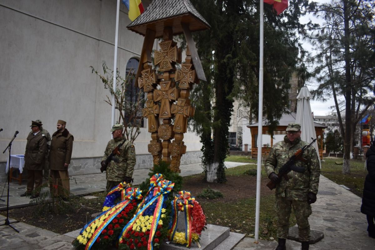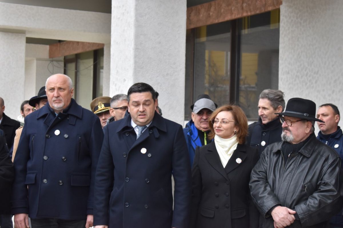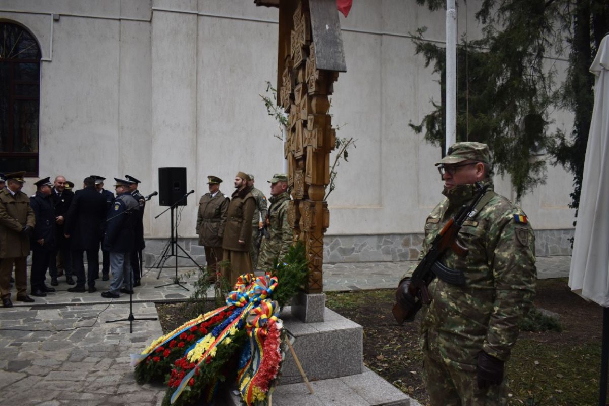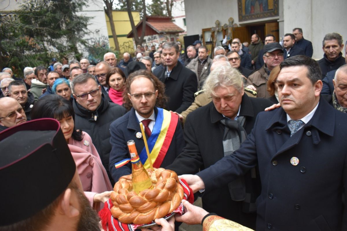 La 11:40 fix din boxe s-a anunțat că în zonă ajung primarul Cosmin Andrei și comandantul Garznizoanei Militare, Ovidiu Damian iar ceremonia a fost oficial deschisă și în această locație. Au urmat intonarea Imnului Național, ceremonialul religios și singurul discurs rostit de profesorul Tudor Maxim, după care s-a trecut la depunerea jerbelor de flori.