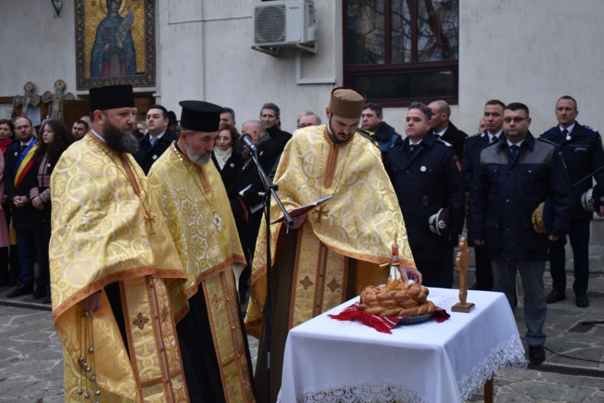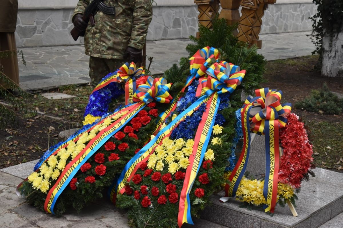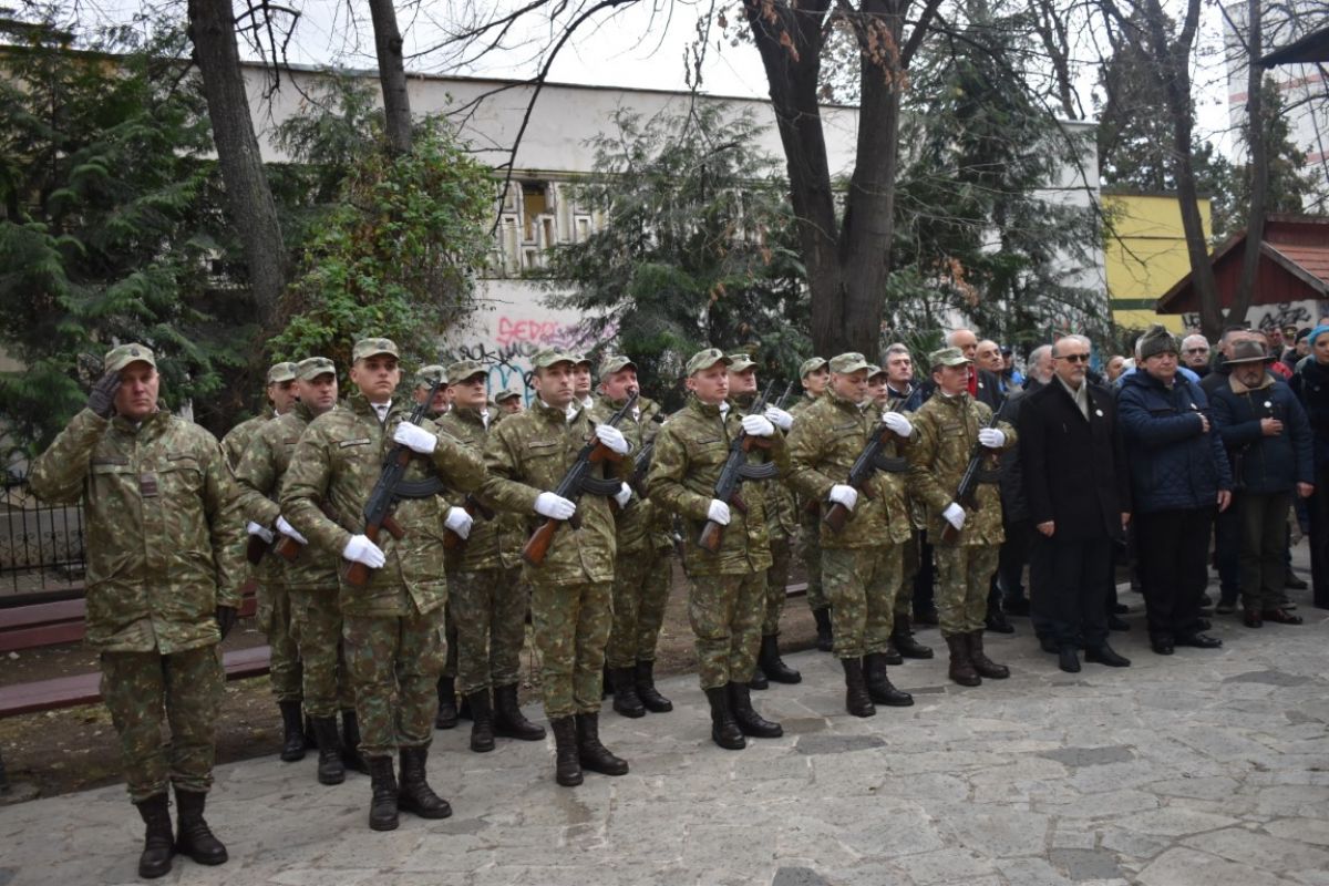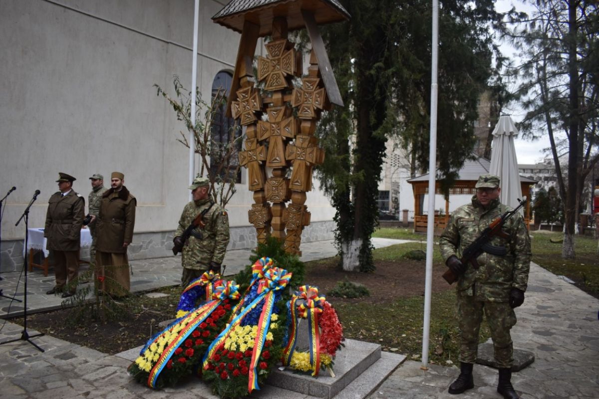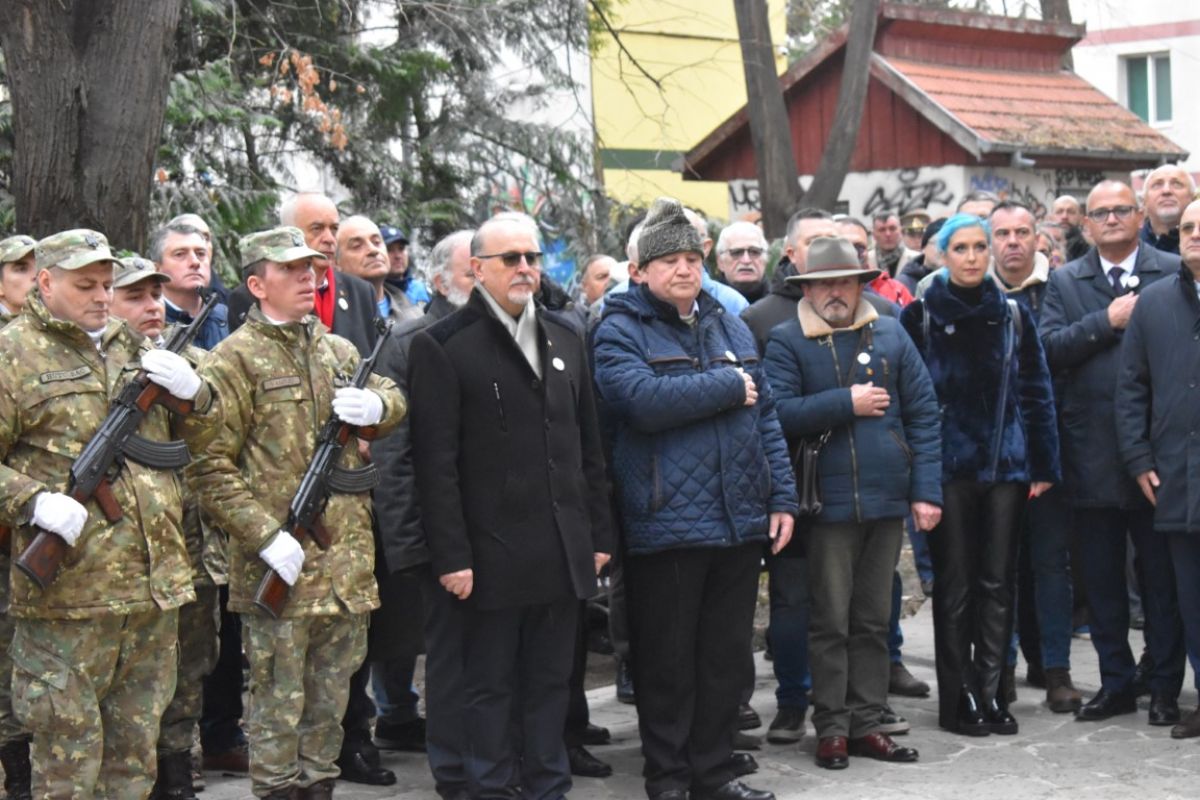 La 11:40 fix din boxe s-a anunțat că în zonă ajung primarul Cosmin Andrei și comandantul Garznizoanei Militare, Ovidiu Damian iar ceremonia a fost oficial deschisă și în această locație. Au urmat intonarea Imnului Național, ceremonialul religios și singurul discurs rostit de profesorul Tudor Maxim, după care s-a trecut la depunerea jerbelor de flori.